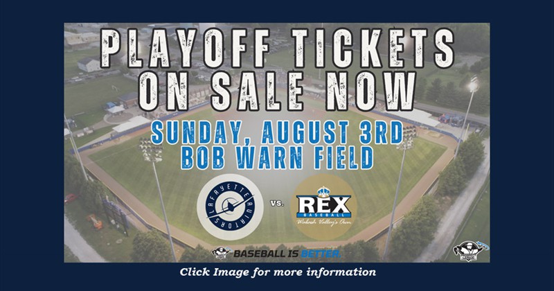"REX Baseball are Central Division Champions & will host the 2025 Prospect League Eastern Conference Championship at Bob Warn Field on Sunday, August 3rd with a 4:35 PM EST first pitch!" Click here to buy your ticket! |